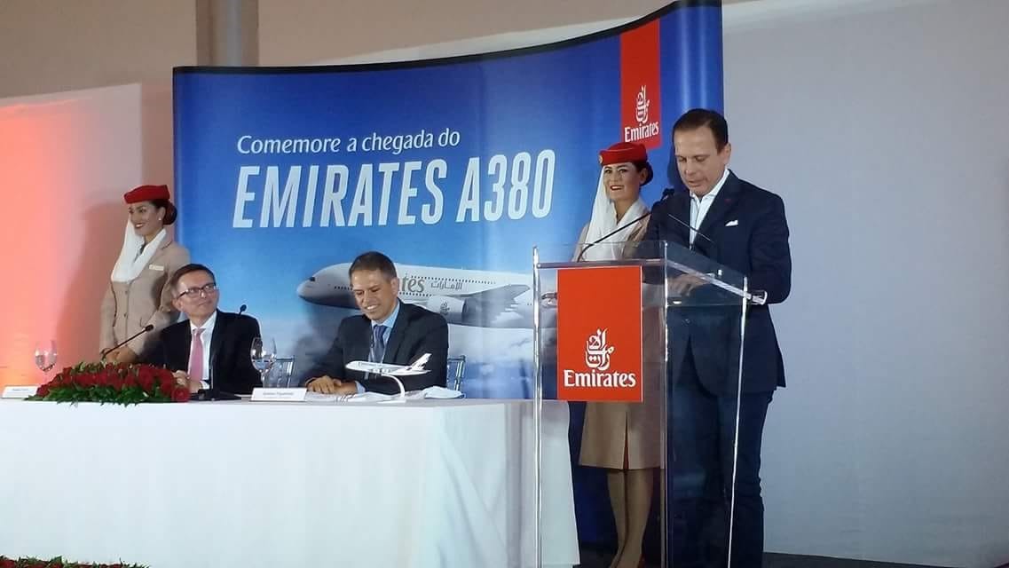 Prisma Tradução realiza coletiva de imprensa com tradução consecutiva da Emirates comemorando a chegada do Air Bus A380
